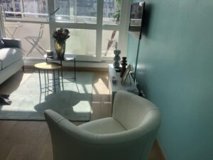 Dès que vous franchissez le seuil, une atmosphère marine envoûtante vous accueille chaleureusement. Les tons de bleu marine apaisants des murs rappellent l’étendue infinie de l’océan, tandis que les accents de blanc évoquent la mousse des vagues qui se brisent contre les rochers. Les larges fenêtres panoramiques inondent l’espace de lumière naturelle et offrent des vues panoramiques sur le port de plaisance animé, où les marins vaquent à leurs occupations et où les mouettes jouent au-dessus des flots.